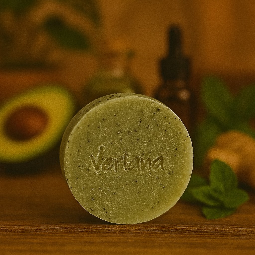 Refreshing herbal soap bar with avocado, green clay, and spearmint. Gently exfoliating and ideal for normal to oily skin.